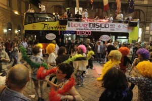 Un bus allestito con un impianto audio professionale, una console sul piano inferiore e tanti ballerini travestiti in stile 70 al secondo piano. Un dancefloor e un palco itinerante con alcune tappe nelle grandi piazze della città: Piazza Strozzi, Piazzale Michelangelo, Piazza della Repubblica, Piazza Santa Maria Novella e tante altre ancora.